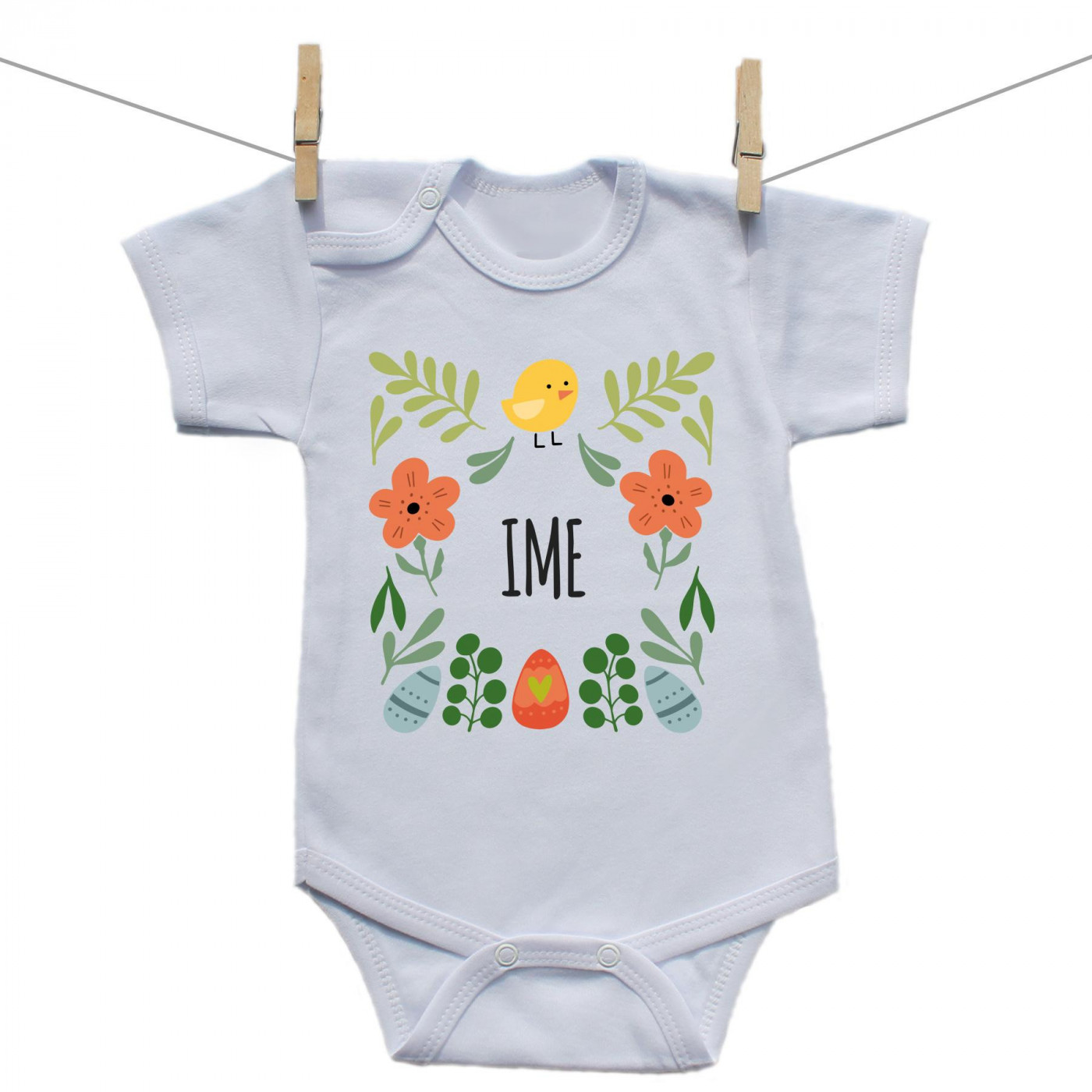 Bodiji s kratkimi rokavi Pomlad z imenom otroka