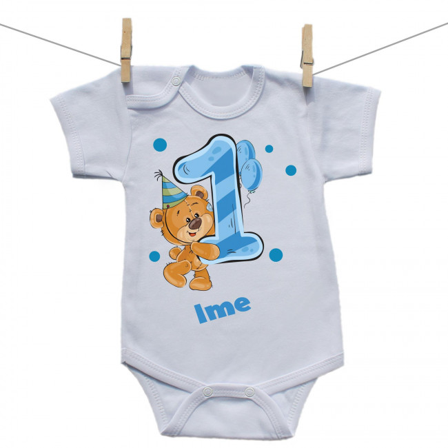 Bodiji s kratkimi rokavi Star sem 1 leto z medvedkom za fantke