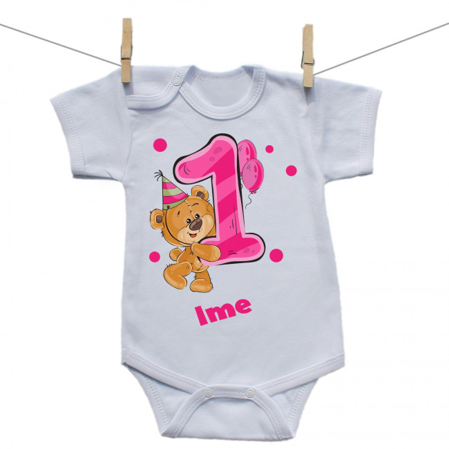Bodiji s kratkimi rokavi Stara sem 1 leto z medvedkom za punčke