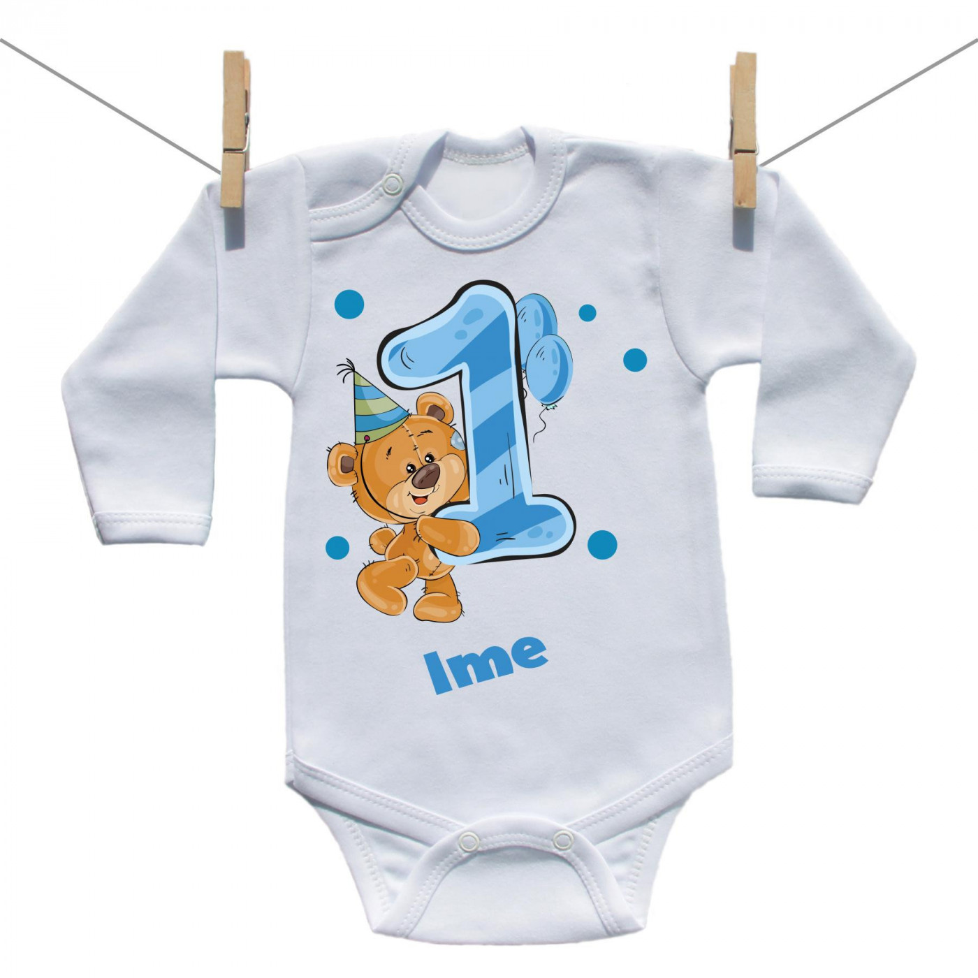 Bodiji z dolgimi rokavi Star sem 1 leto z medvedkom za fantke