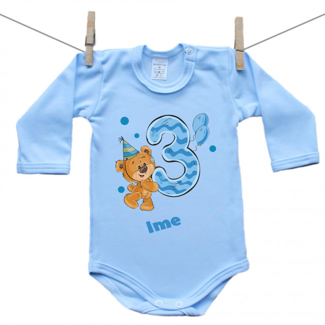 Modre bodiji z dolgimi rokavi Star sem 3 leta z medvedkom za fantke
