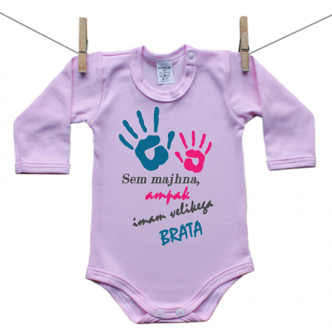 Roza bodiji z dolgimi rokavi Imam starega brata - deklica