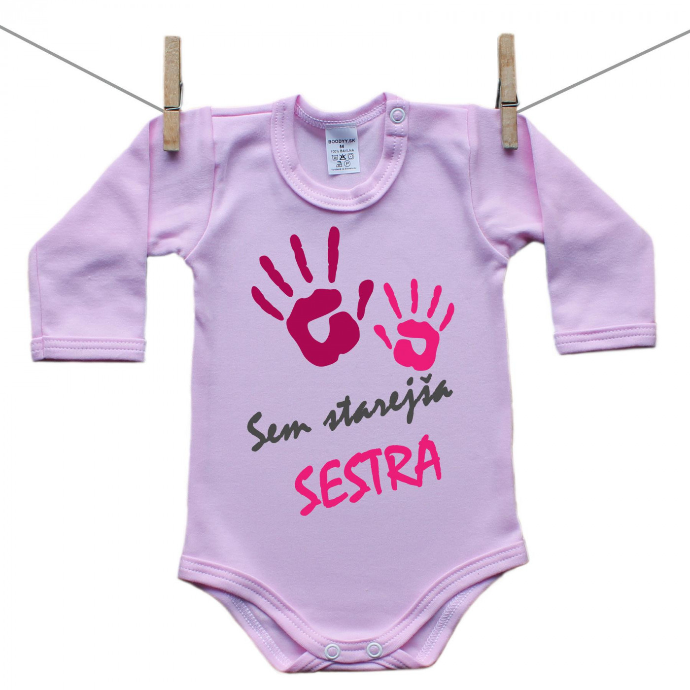 Roza bodiji z dolgimi rokavi Jaz sem starejša sestra