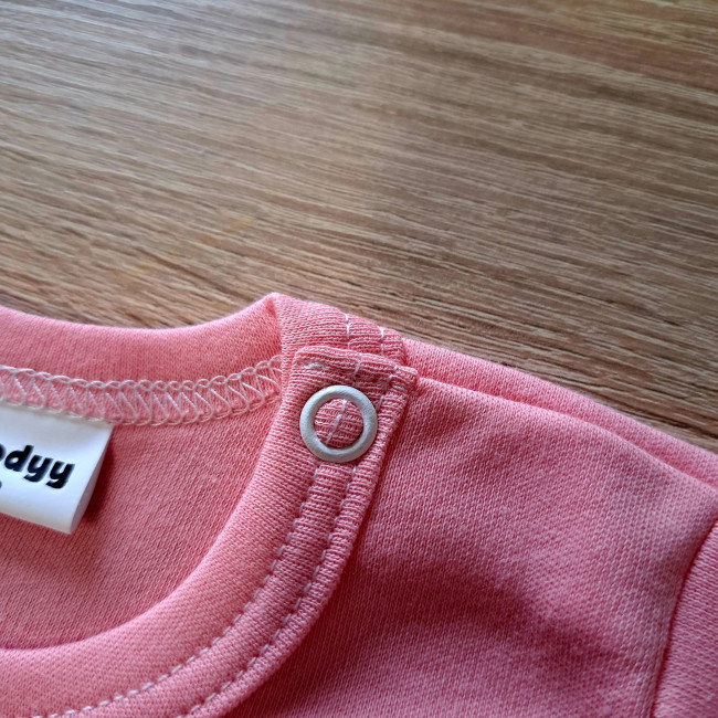 Naši otroški bodiji iz kakovostnega 100% bombaža so izdelani v naši delavnici. Mehki, zračni in nežni do otroške kože. Bodi ima zapenjanje med nogicami in pri vratu za čim bolj udobno oblačenje.