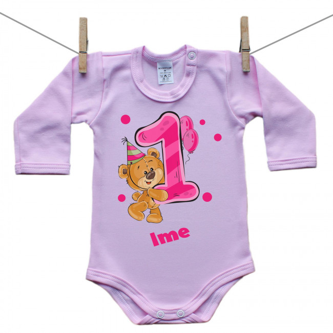 Roza bodiji z dolgimi rokavi Stara sem 1 leto z medvedkom za punčke