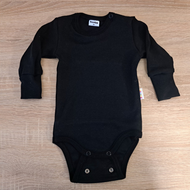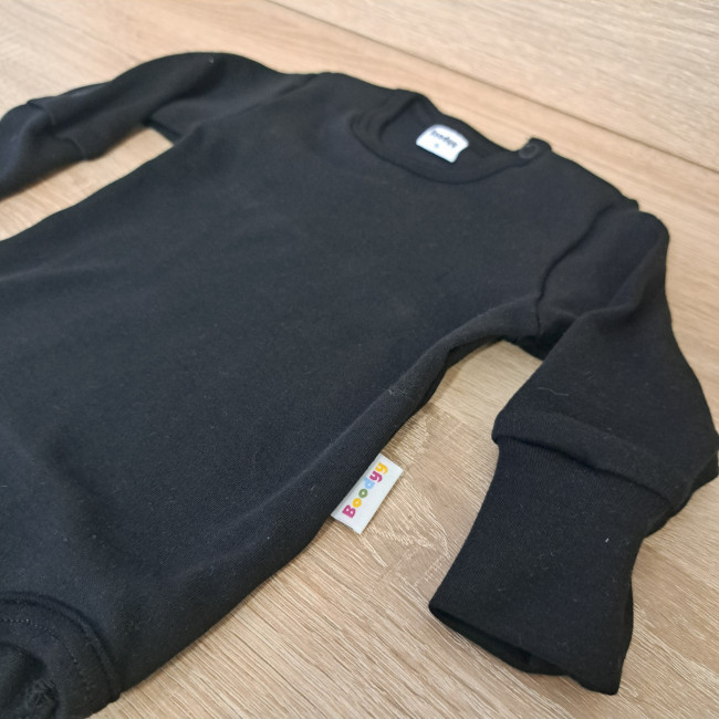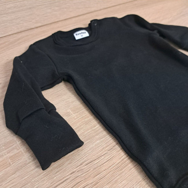 Ta bodi je dokaz, da so lahko tudi otroška oblačila stilska in izjemno funkcionalna. Zahvaljujoč domiselnemu kroju in nastavljivemu zapenjanju pokriva kar dve konfekcijski številki. Bodi tako raste skupaj z Vašim dojenčkom in zdrži dlje kot običajni kosi. Črna barva je brezčasna klasika, ki jo je enostavno kombinirati in je primerna tako za svečane priložnosti kot za vsakodnevno nošenje.