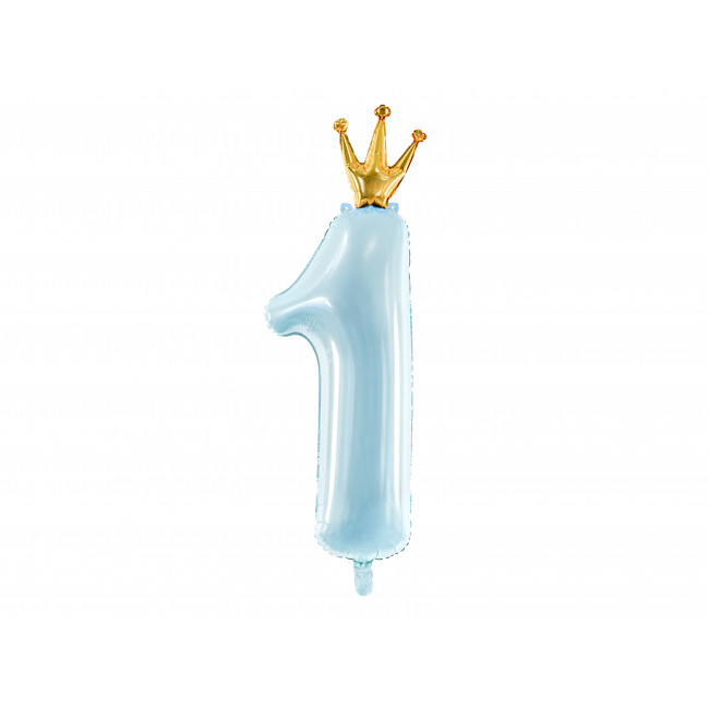 Folija balon številka 1, 37x100cm, nebeško moder s krono