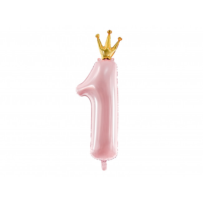 Folija balon Številka 1, 37x100cm, svetlo roza s krono