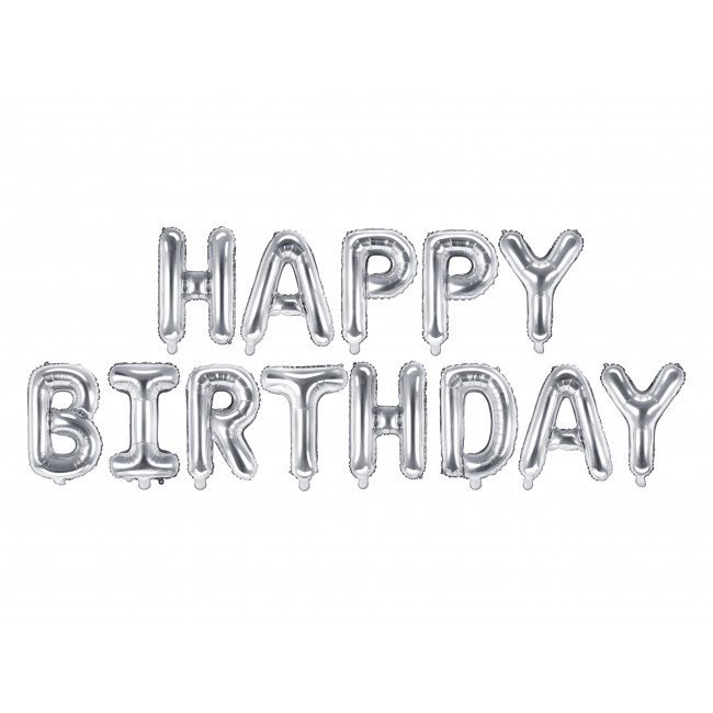 Folija balon Happy Birthday, 340x35cm, srebrn