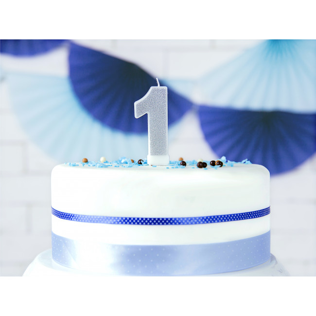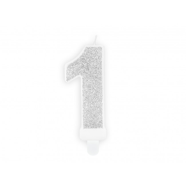 Rojstnodnevna svečka Številka 1, srebrna, 7cm