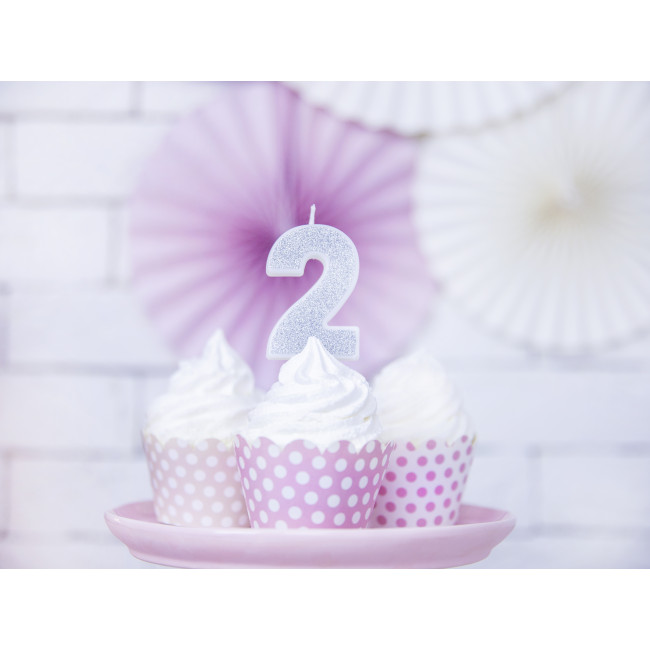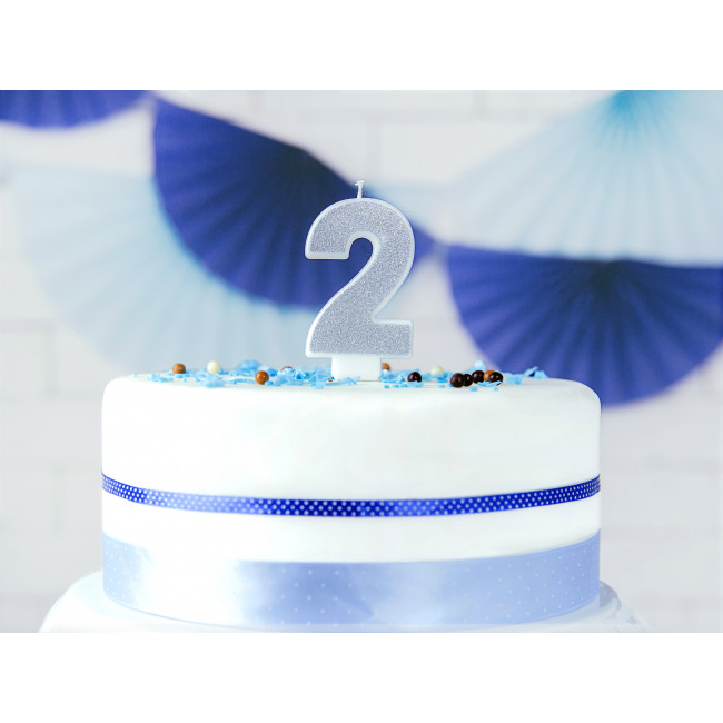Rojstnodnevna svečka Številka 2, srebrna, 7cm