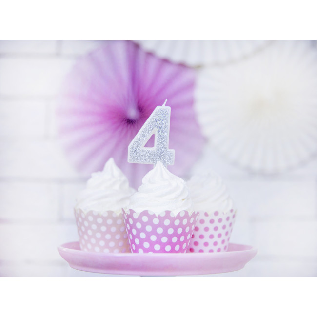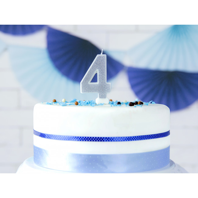 Rojstnodnevna svečka Številka 4, srebrna, 7cm