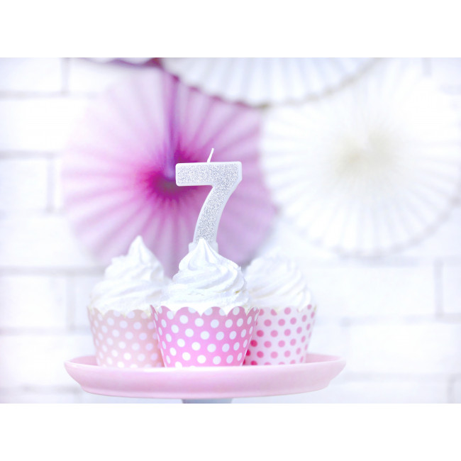 Rojstnodnevna svečka Številka 7, srebrna, 7cm