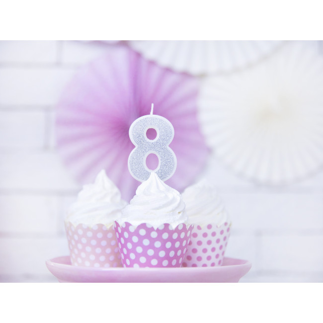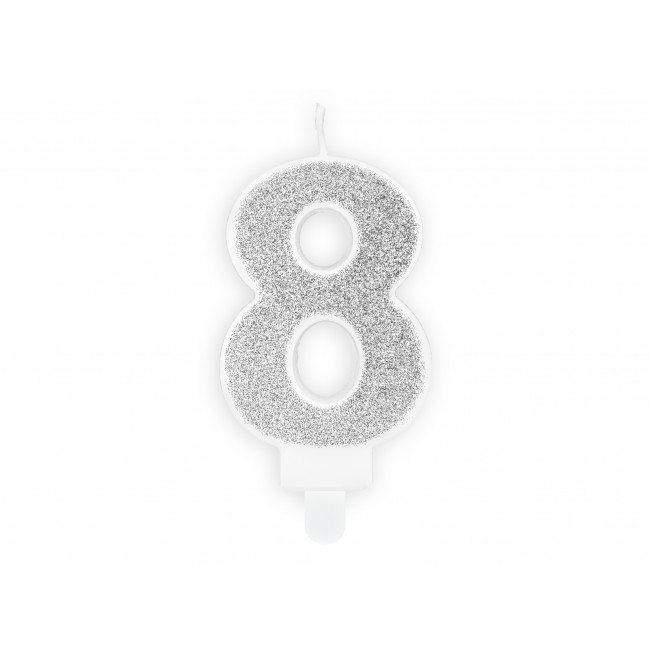 Rojstnodnevna svečka Številka 8, srebrna, 7cm