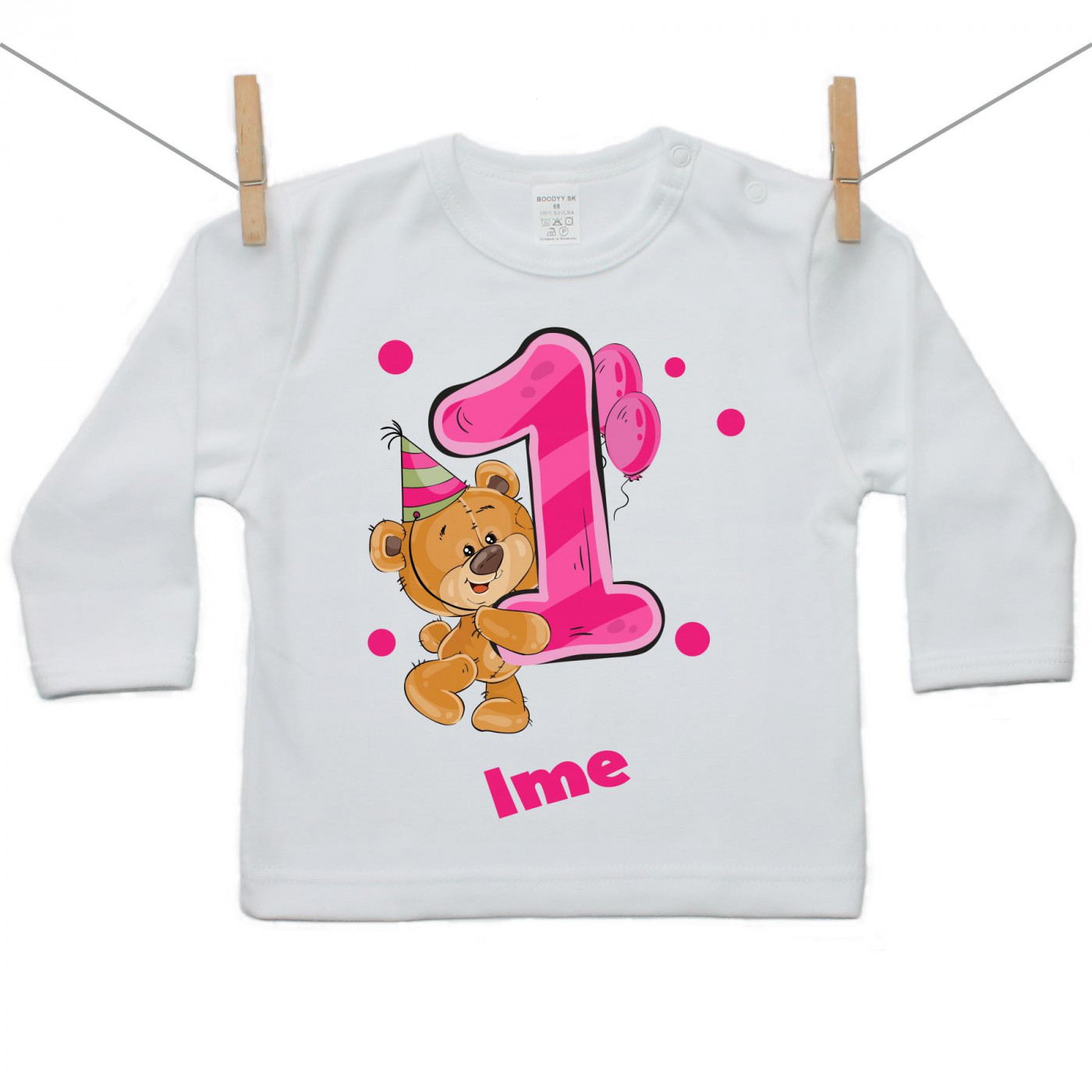 Majica z dolgimi rokavi Stara sem 1 leto z medvedkom za punčke