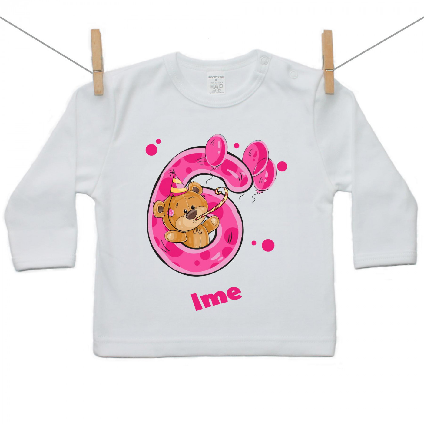 Majica z dolgimi rokavi Stara sem 6 let z medvedkom za punčke