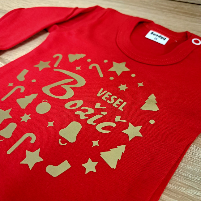 Rdeča barva prinaša energijo božiča, zlat tisk pa doda tisti posebni, slavnostni sijaj. Naša otroška majica iz omejene zlate izdaje je popolna izbira za odpiranje daril, družinsko kosilo ali božično prireditev. Motiv "Vesel božič" v zlati barvi na rdeči podlagi je brezčasna klasika, ki nikoli ne gre iz mode.