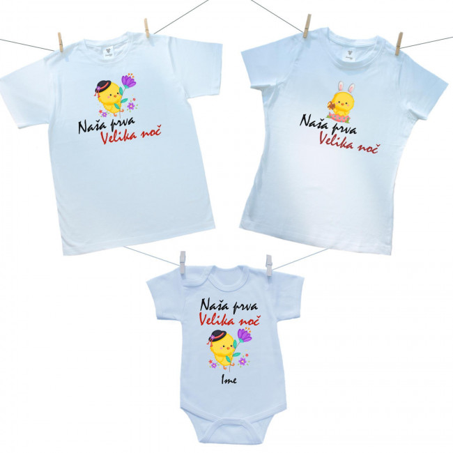 Družinski set (bodiji s kratkimi rokavi) Naša prva Velika noč z imenom - Fantek