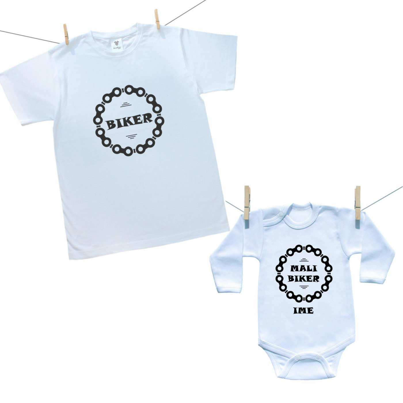 Družinski set (bodiji z dolgimi rokavi) Tata i mali biker