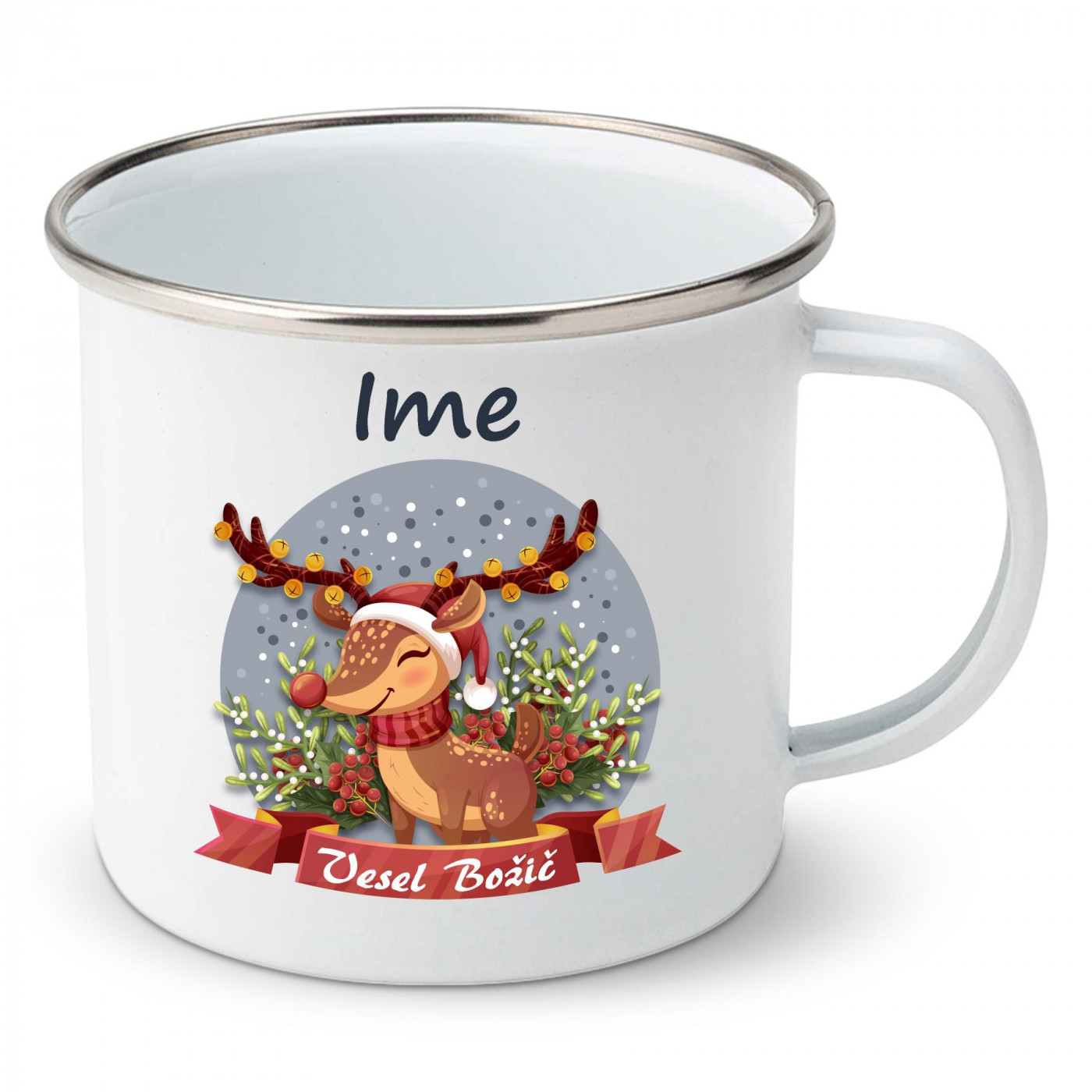 Emajlirana skodelica Vesel božič z vašim imenom