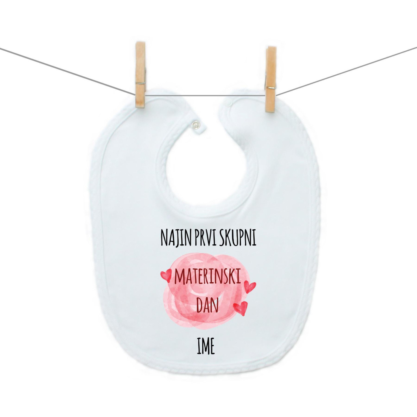 Izdelan z ljubeznijo v naši delavnici iz kakovostnega 100% bombaža, ta slinček je mehak, vpojen in nežen do občutljive otroške kože.